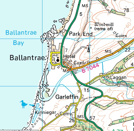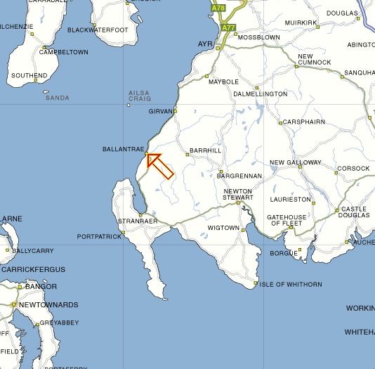 Ballantrae. South west of Colmonell, and forming the most southerly point of the county, the village of Ballantraestands on the right bank of the Stinchar, where it is crossed by a bridge, and ends in the sea, four and a half miles below Colmonell, and 13 miles south-south-west of Girvan. It is a seaport and fishing station, with a small artificial tidal harbour; has a post office, with telegraph, money order and savings bank departments; a Commercial Bank, a number of shops, a hotel, Established and Free Churches, a public school, and ruins of an ancient castle. Population in 1871, 515; in 1881, 426. (from Ayrshire Roots, Notes on the way through Ayrshire 100 years ago).